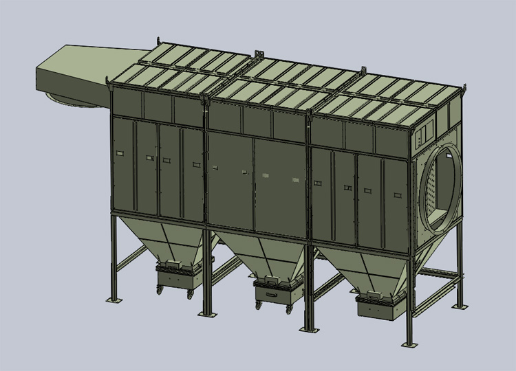 Filter cartridge dust collector is a kind of filtering dust removal equipment, which is composed of filter cartridge as filter element or pulse jet dust removal equipment. Filter cartridge dust collector has many advantages, such as compact structure, small volume, high dust removal efficiency, good dust collector effect, convenient manual maintenance and so on. At present, the application scope of this equipment in the industrial production field has become wider and wider. Its working principle is as follows: after the dusty gas enters the dust collector from the air inlet, the air flow speed slows down, the coarse particles leave 76 and settle in the dust collecting chamber, the fine dust is blocked on the surface of the filter cartridge when passing through the filter cartridge with the air flow, and the crystalline gas is discharged from the air outlet; When the ash layer on the surface of the filter cartridge is thick, the pulse controller will issue a command to open the blow valve. The compressed air in the air bag will be ejected at high speed through the blow pipe, and the surrounding air several times of the ejected air volume will be induced to enter the filter cartridge and be ejected rapidly from the inside to the outside. The dust on the surface of the filter cartridge will be blown down into the dust collection chamber and finally discharged from the ash hopper.