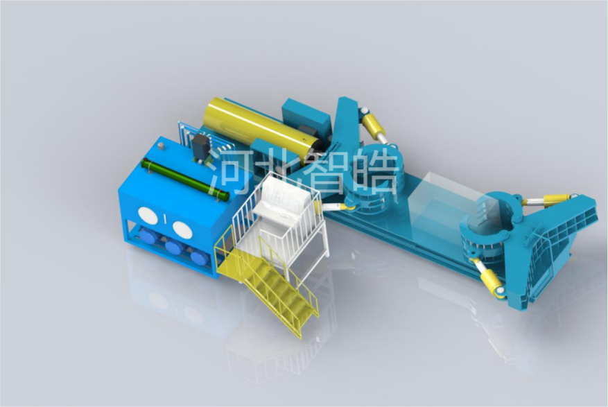 金属拆包机是通过液压柱塞泵向集成油路供油,经过分配手动阀向液压缸传送后,产生动力。压力可以根据实际不同情况调到需要的额定值(额定值大小由压力表显示)。金属拆包机通过液压机械手抓挤压分离,并通过多次分解,从而拆解包块。