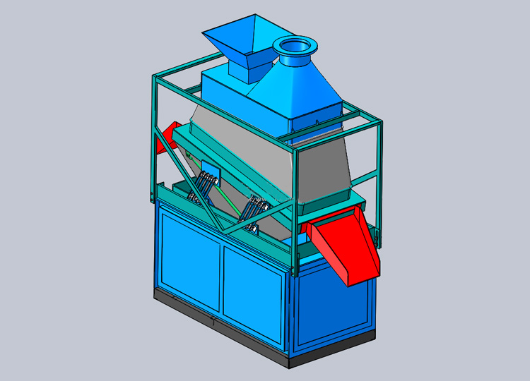比重风选机主用于垃圾分选工艺中轻重物分离的工序,比重分选机是根据物料密度不同、同种物料不同粒度或不同形状的分离分选设备。该机使进入机内的物料通过风的吸浮力作用,对不同比重和不同粒状的物料吸浮力的不同,和物料的重力及其他有效力,把不同比重物料和同种物料粒度、形状的不同,进行比重风选分离。风吸走的比重小的、粒度小的或受风面积大的薄片状物料经过集料器和收尘器收尘后排出机外,比重大的物料和同种物料受风力小的物料从机的另一端排出。
