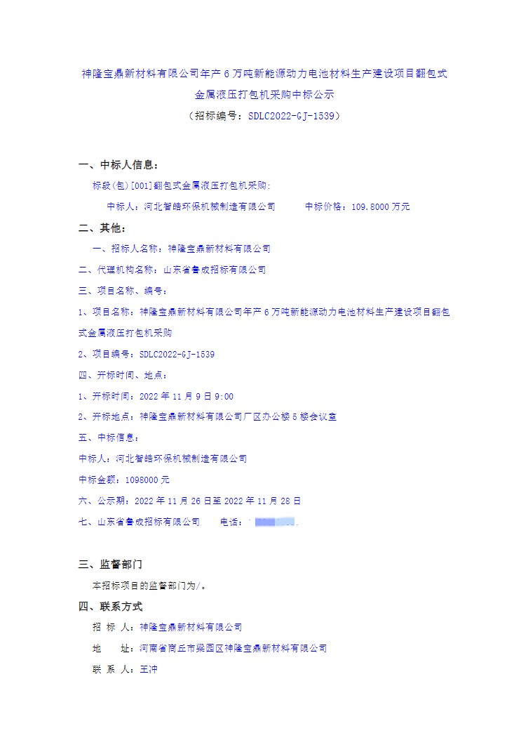 热烈庆祝神隆宝鼎新材料有限公司金属液压打包机项目中标